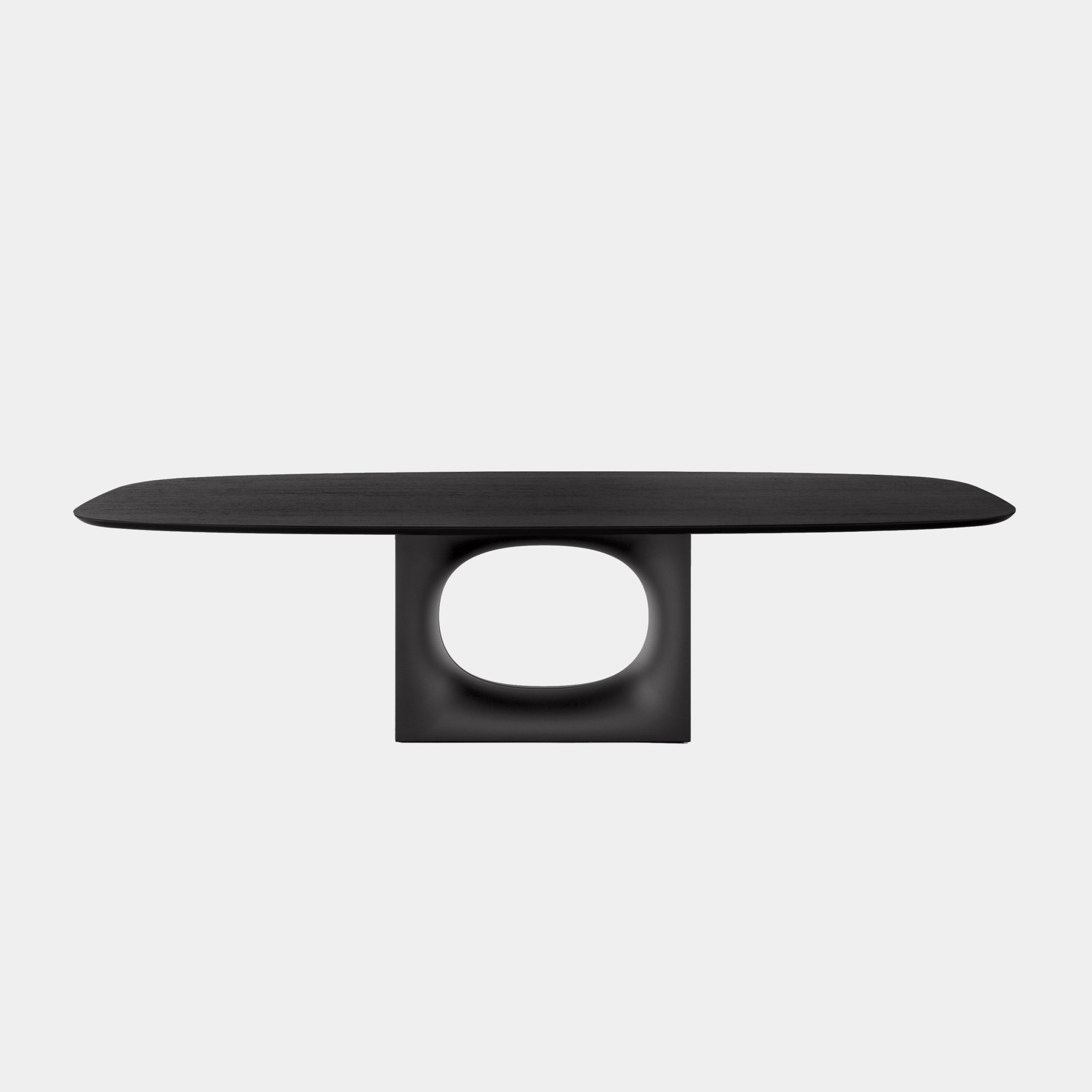 Minimalism meets warmth in the Beleos 3200 dining table by Bross. Designed by Giulio Iacchetti, it features an elongated oval glass top and a sculptural wooden base inspired by genetic forms. Available in walnut or oak with customizable finishes, its elegance lies in the details and shifting perspectives.
